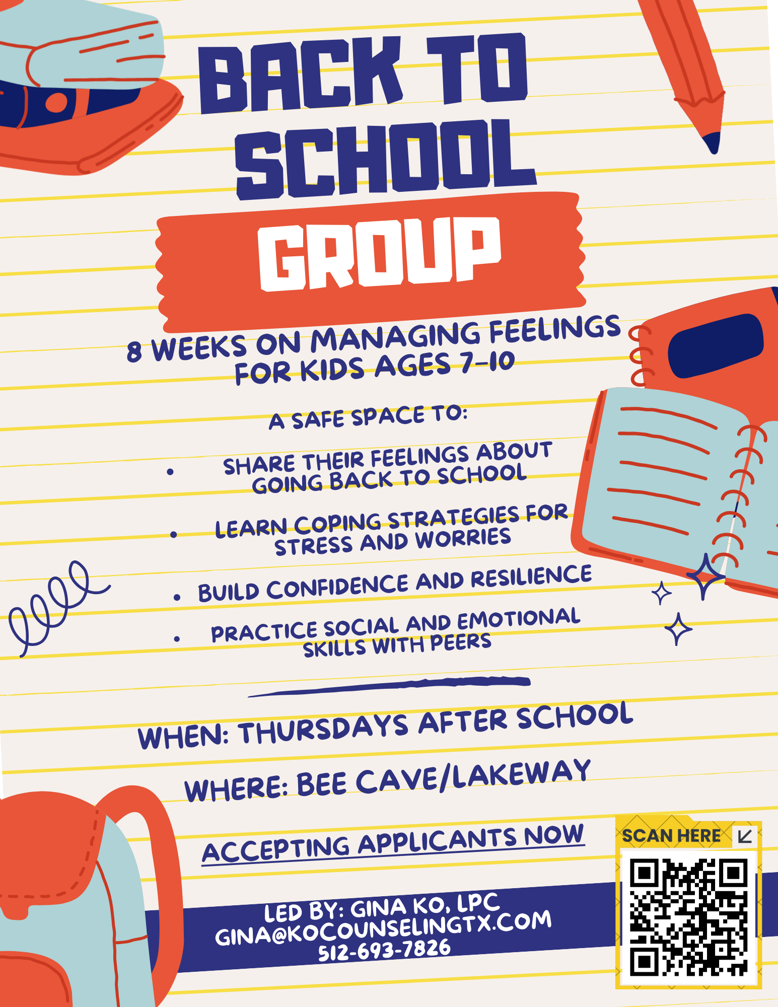 When working with preteens and teens, I focus on validating their personal experiences, while highlighting their strengths and core values. I incorporate art and other creative techniques, as well as Acceptance and Commitment Therapy (ACT) and Solution-Focused approaches. We practice viewing thoughts and feelings through a mindful lens and accepting feelings as they come. My goal is for teens and children to walk away feeling empowered, knowing they can take practical steps towards positive change.